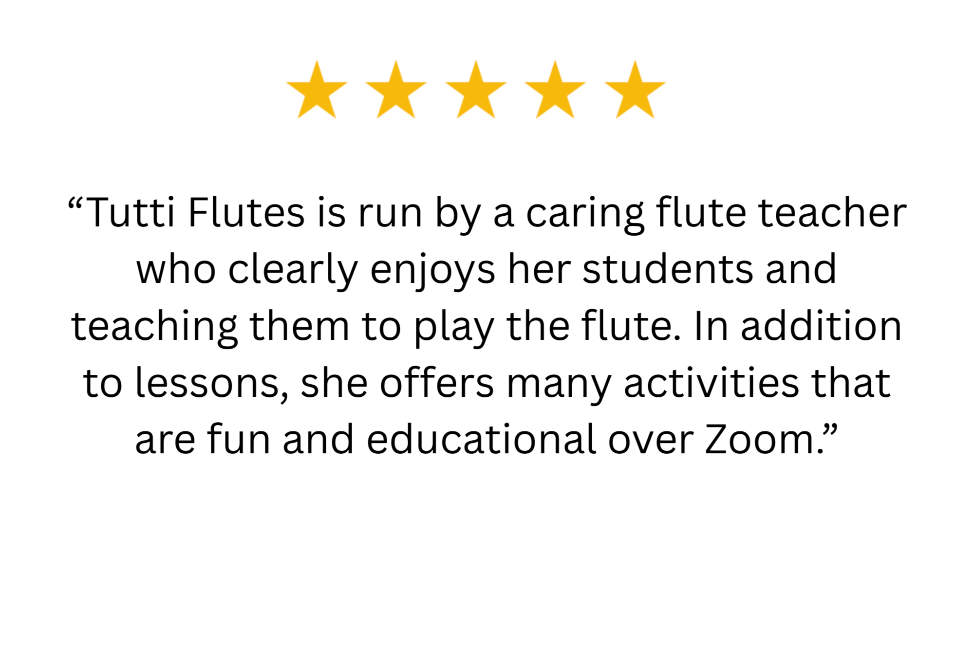 Tutti Flutes is an online flute studio offering lessons over Zoom to children age 4 though high school.